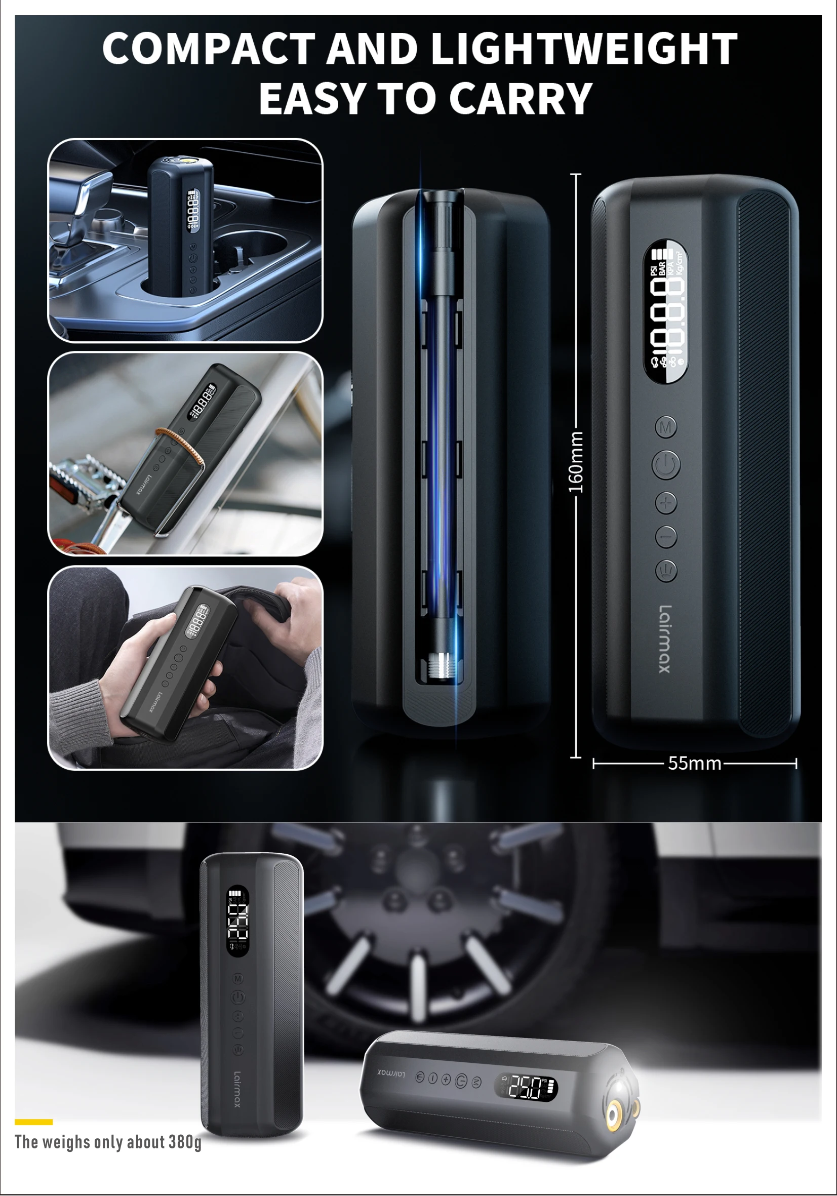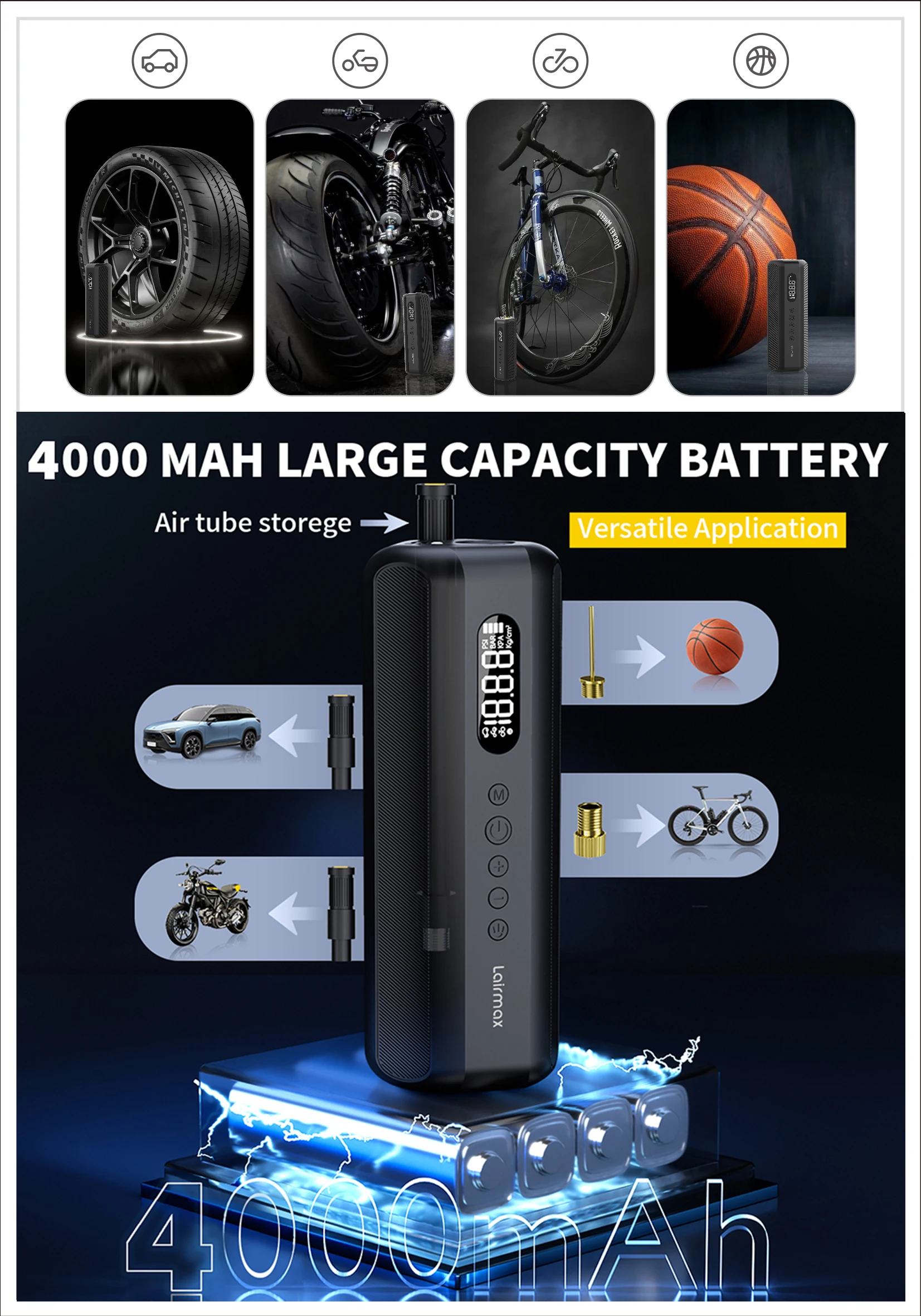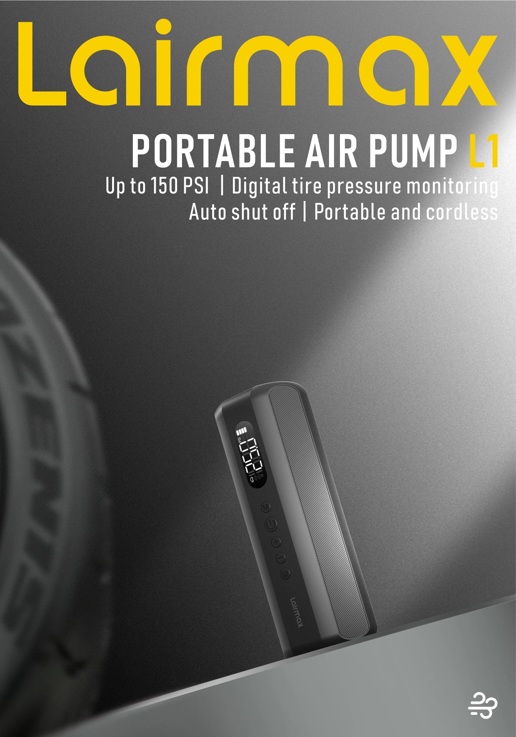 150PSI/19Cylinder Portable Air Pump, Electric Tie Inflator with Digital Pressure Gauge, Fast Inflation for Car Tires,Bikes,Balls