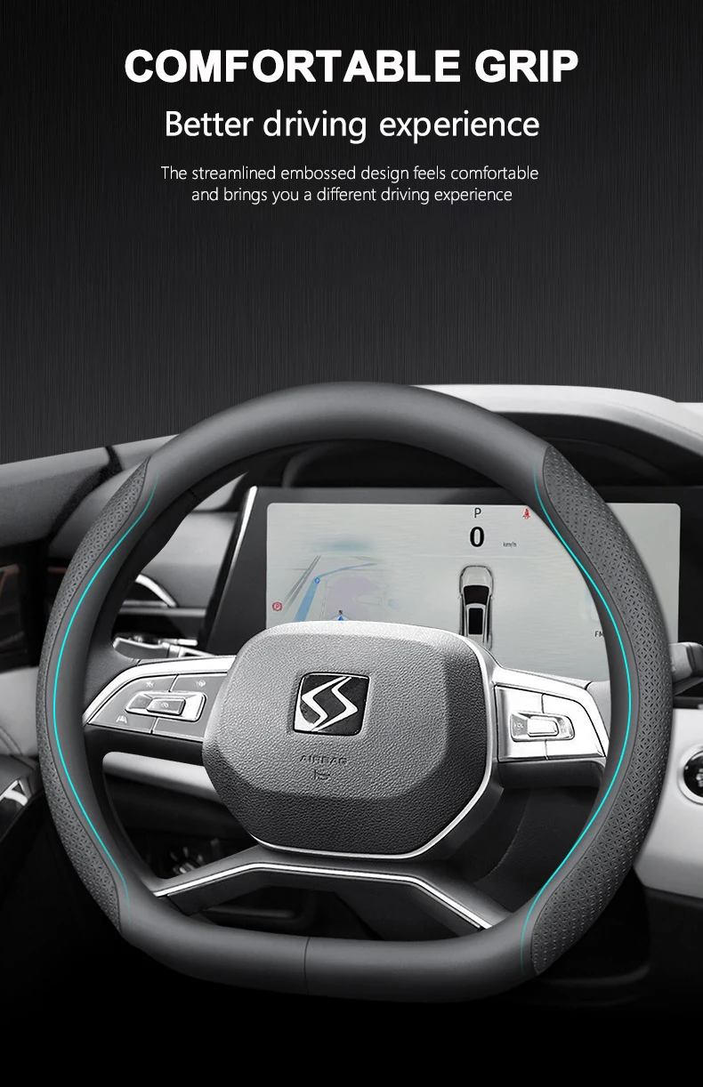• Non-slip D-shaped design for better grip :The cover's non-slip D-shaped design provides a better grip on the steering wheel, improving your driving experience.
