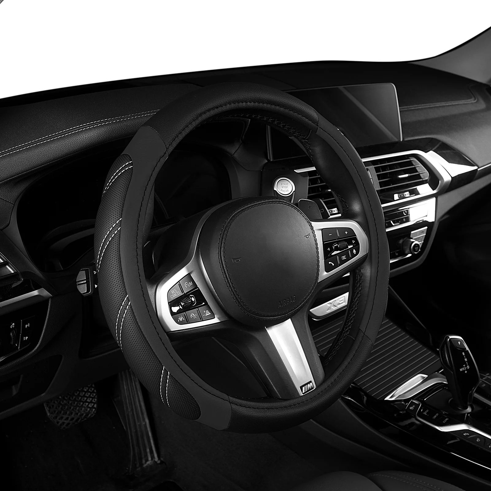 Car Steering Wheel Cover 14-15 Inch Universal Sport Leather All Purpose Upholstered Grip Breathable Truck SUV Jeep