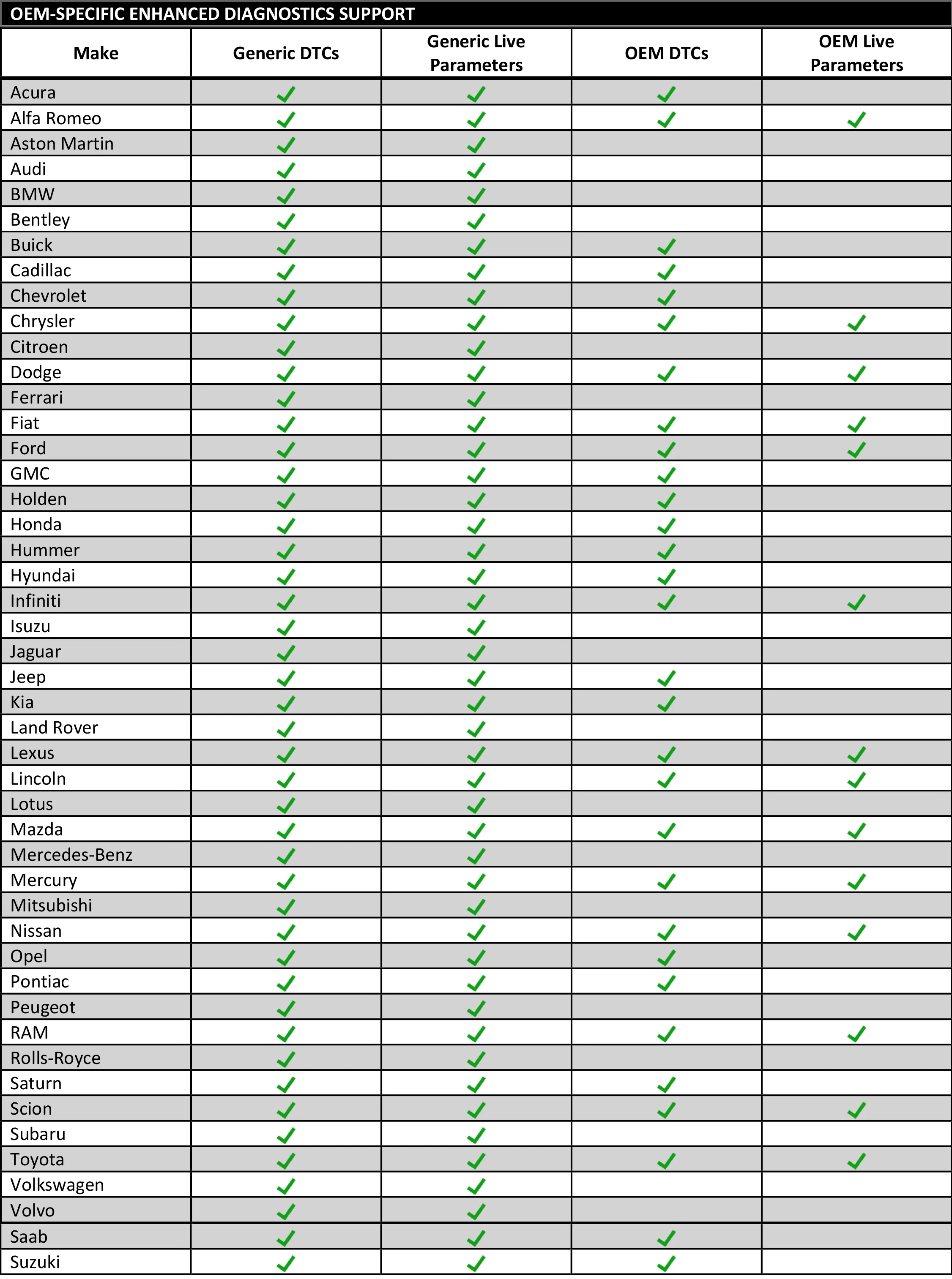 Enhanced Diagnostics provide access to OEM level diagnostics that are not available over generic OBD2.