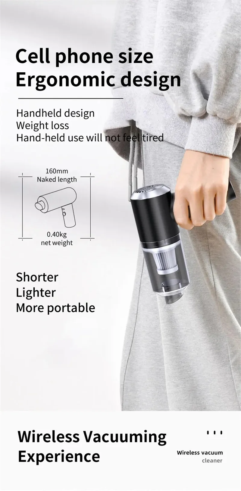 Upgrade your cleaning routine with this high-power cordless car vacuum. Designed with 15,000PA suction strength and dual blowing + suction functions, it quickly tackles dust, crumbs, pet hair, and dirt in every corner. Compact and lightweight, this vacuum is perfect for your car, home, office, or even keyboards. Includes multiple nozzles for versatile, mess-free cleaning wherever you need it.